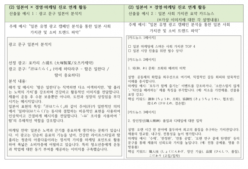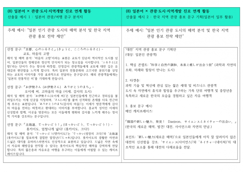 [참고] 일본어 교과 - 관심진로(분야) 연계활동 사례(8건) 와 교과세특 활용 예시