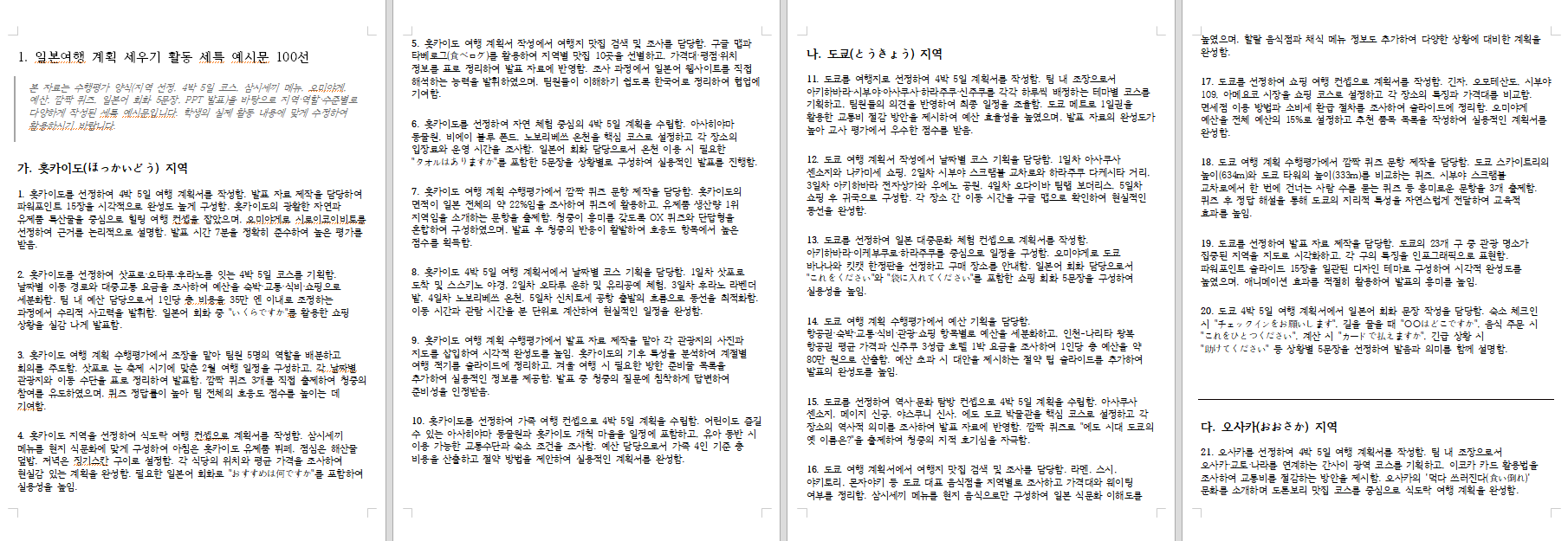 [참고] 일본여행계획세우기 활동 또는 수행평가의 교과세특 예시문 100