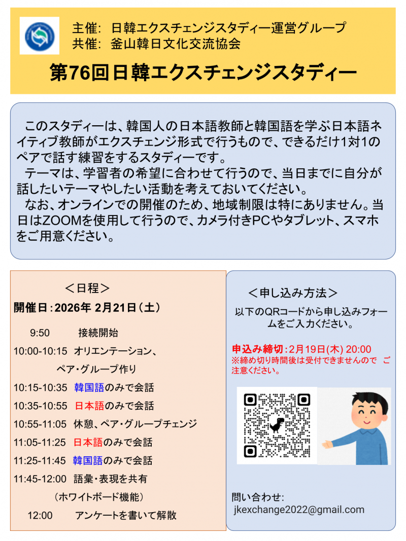 제76회 한일 익스체인지 스터디 온라인 개최 안내