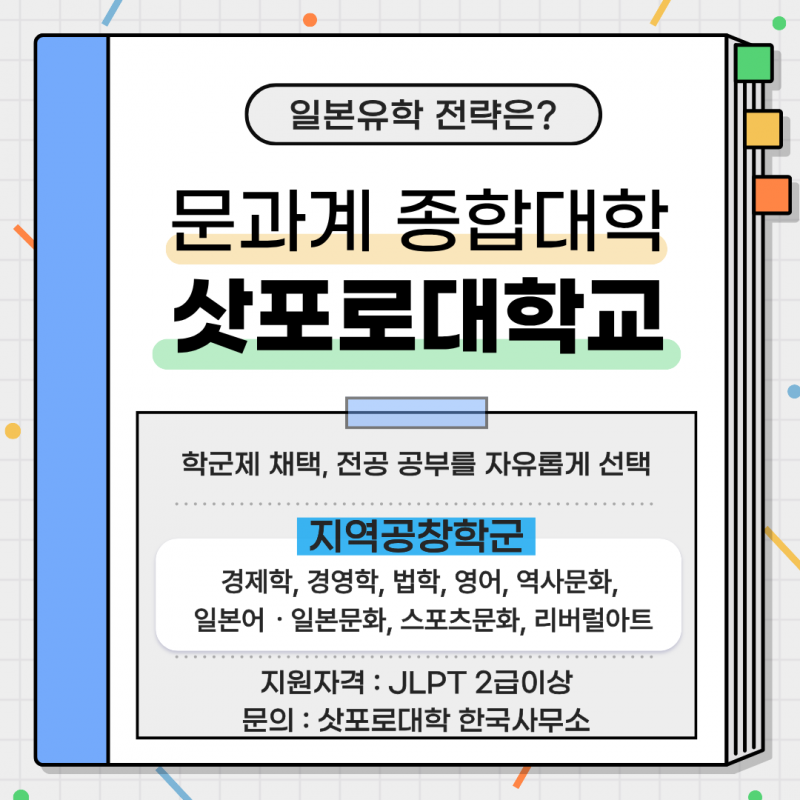 혹시 지도하는 학생 중에 삿포로대학을 희망하는 학생이 있다면 삿포로대학 한국사무소로 문의주시면