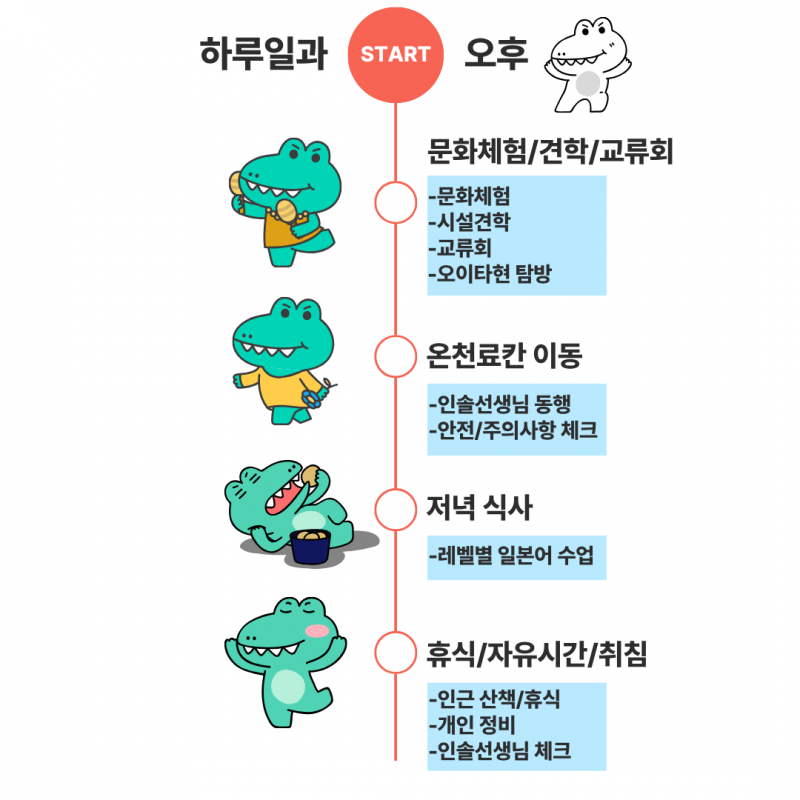 내 용 : 일본어수업, 일본문화 체험 및 탐방, 시설견학, 현지 청소년 교류회 등