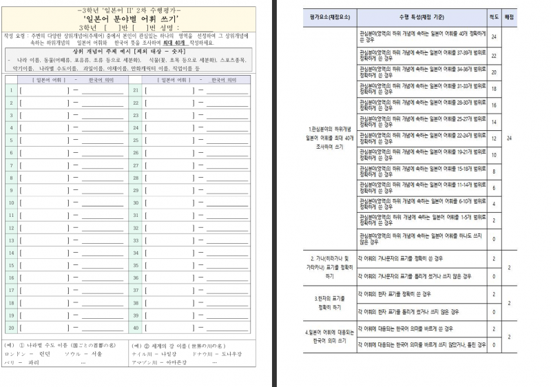 [참고] '일본어 분야별 어휘 조사하기' 평가양식