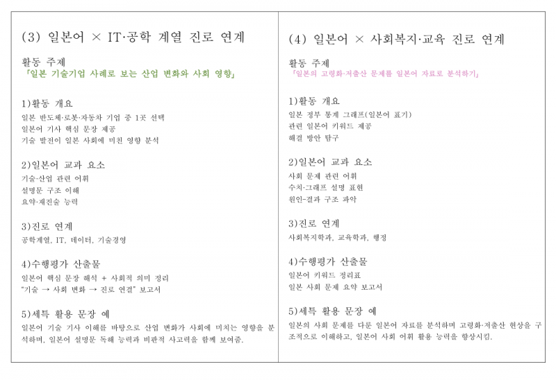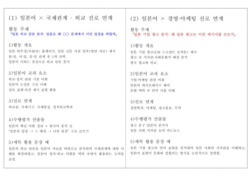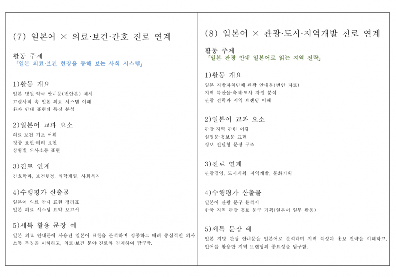 [참고] 일본어 교과 - 관심진로(분야) 연계활동 사례(8건) 와 교과세특 활용 예시