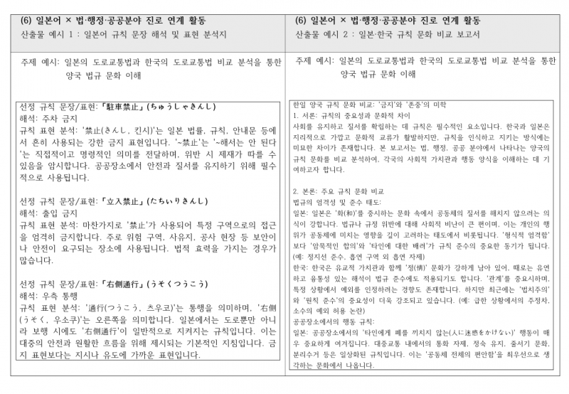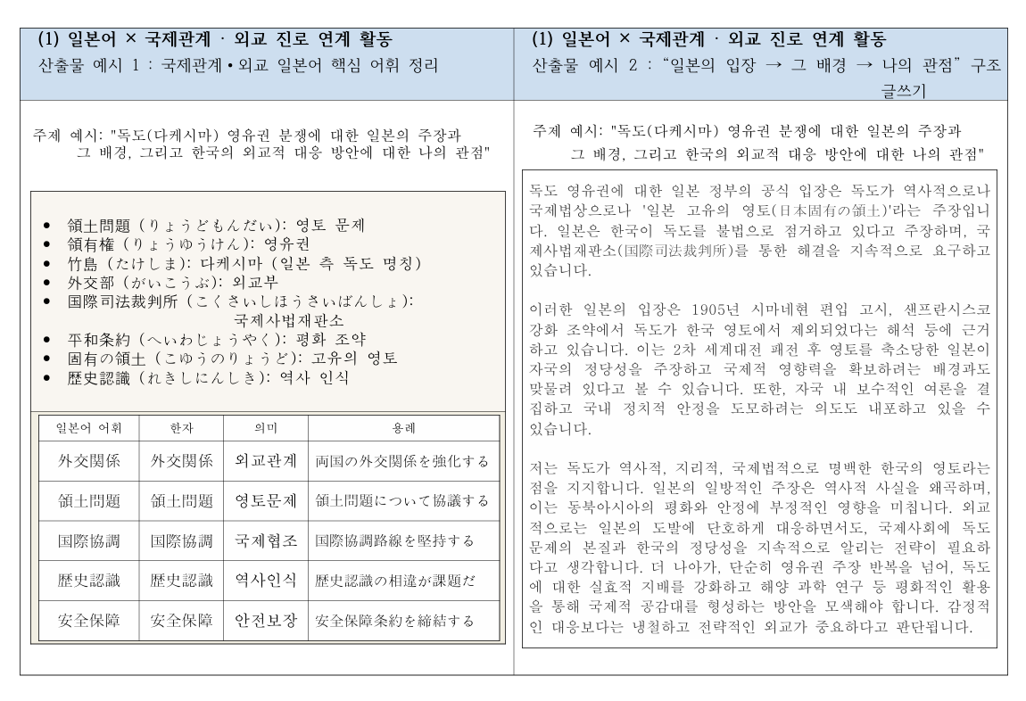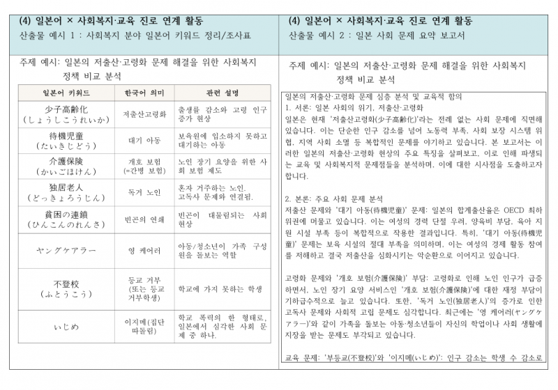 [참고] 일본어교과 + 관심진로 연계 활동別 산출물 예시 [(1) ~ (8)] 모음.
