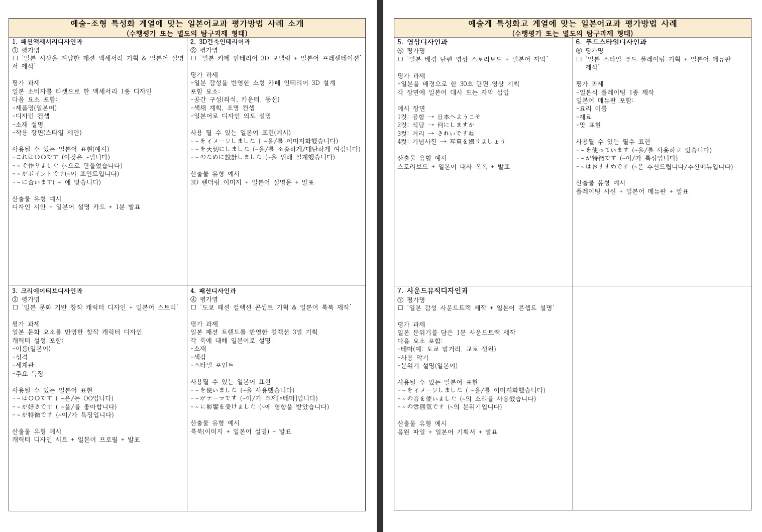 [참고] '일본어교과' + '예술-조형 특성화' 계열의 진로 연계 과제평가 구성 / 산출물 예시