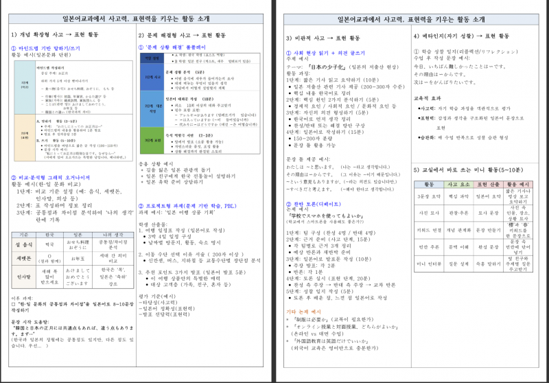[참고] '일본어' 교과에서 사고력, 표현력을 키우는 활동 예시 소개