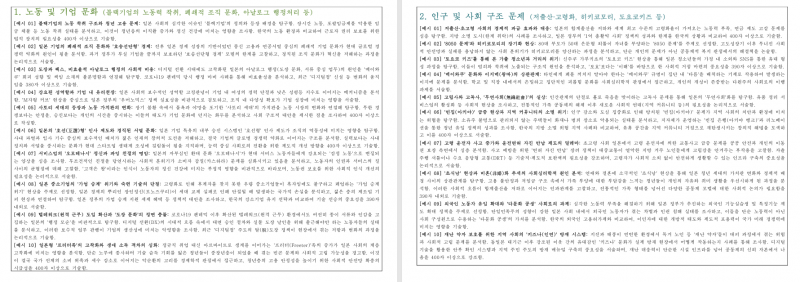 [참고] 일본사회문제(또는 사회이슈) 탐구형 평가의 교과세특 예시문 모 [영역별 10개씩, 5개의 영역주제 ]