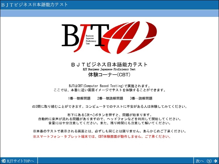 BJT를 수험하기 전에 먼저 체험테스트에 도전해 봅시다.