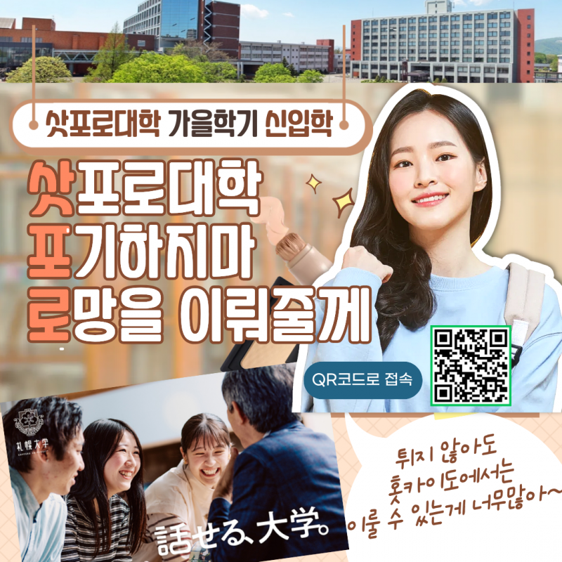 삿포로대학은 ‘가을학기(10월입학)’로 일본유학을 시작하기에 꽤 좋은 대학 중 하나입니다.